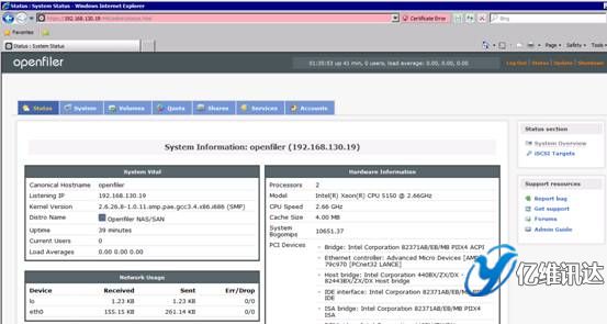 至此為止,在 Openfiler 系統(tǒng)上對 iSCSI 虛擬存儲的配置過程完畢.